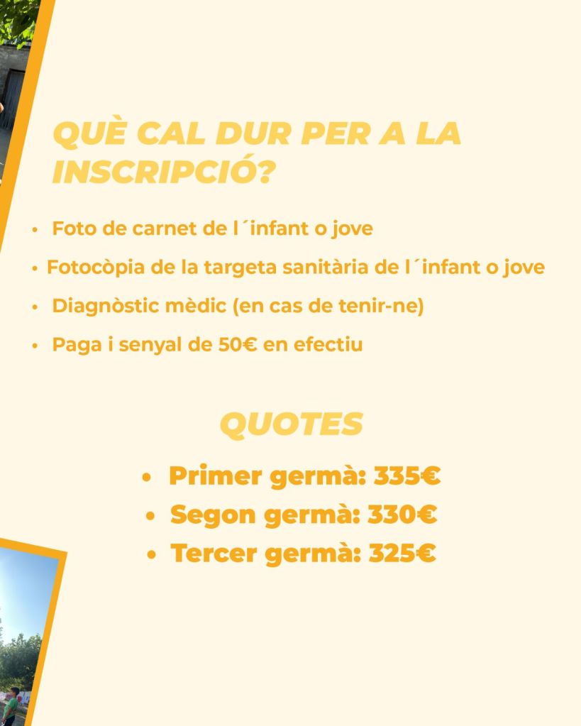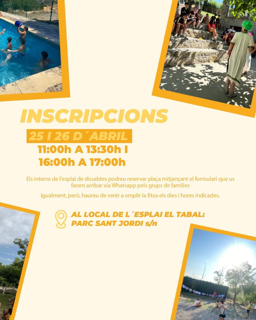 📝 Inscripcions el 26 i 27 d’abril al local del l’Esplai El Tabal (Parc Sant Jordi)