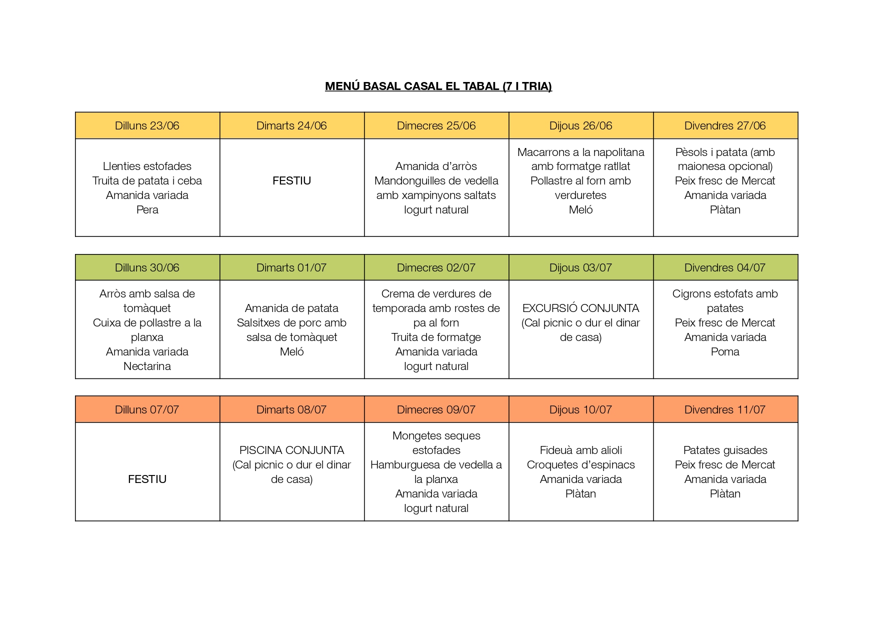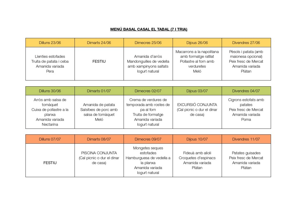 La resta s’efectuarà per transferència bancària. El dia que es faci la inscripció us donarem més informació. La quota total per a les 3 setmanes és de 174€.