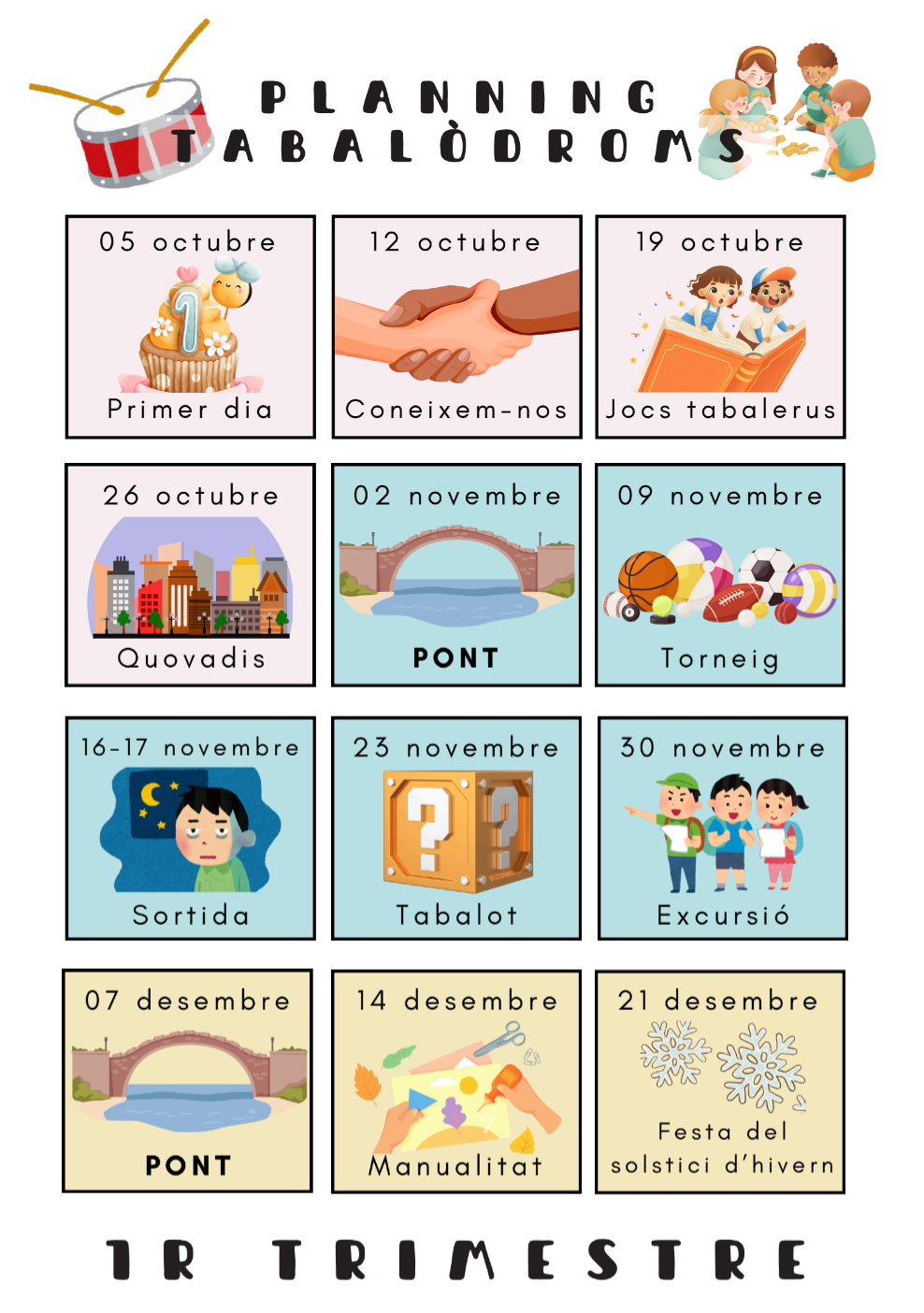 Aquest primer trimestre farem activitats variades que ens permetran conèixer els nostres companys i companyes així com descobrir qualitats desconegudes de nosaltres mateixos.